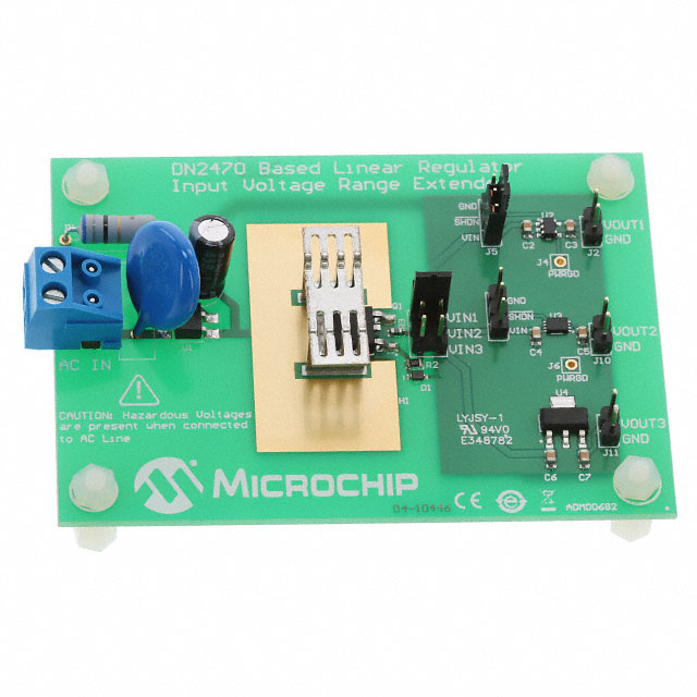 | Detailed Description | DN2470, MCP1754, MCP1755, MCP1790 1 - Single Channels per IC Positive Fixed Linear Voltage Regulator Evaluation Board |